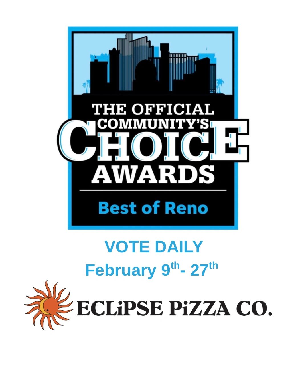 We've been nominated in the Best of Reno for Best Pizza, Best takeout, and Best Outdoor Patio. Thanks for the consideration.
